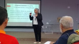 Durante sua apresentação, Eliane destacou que o luto não está relacionado apenas à morte, mas também a outras perdas significativas, como mudanças de saúde, rupturas afetivas, aposentadoria, limitações físicas e transformações na rotina, situações comuns na maturidade.