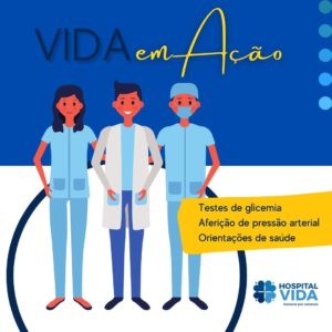 Nesta sexta-feira (12/11) o Hospital Vida faz, novamente, o convite: Partipem conosco de mais uma “Vida em Ação”! “Realizar o Projeto “Vida em Ação” é sempre uma oportunidade de oferecer orientações de saúde em geral, exames rápidos de glicemia e pressão, mas especialmente, de manter o Hospital Vida perto da população”, disse Drº João Cubas,...