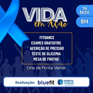 Em alusão à campanha Novembro Azul, o Hospital Vida realiza neste domingo, 16 de novembro, a partir das 8h, uma manhã especial dedicada à prevenção, atividade física e promoção da saúde do homem e da mulher. A ação, intitulada “Vida em Ação”, acontece na Orla de Ponta Verde e contará com uma série de atividades...
