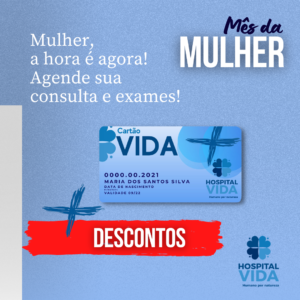 A hora é agora! O Hospital Vida vai oferecer ainda mais descontos às mulheres que possuem o Cartão Vida +. Se você está sem plano de saúde, não adie mais suas consultas e exames. Durante todo o mês de Março, o desconto oferecido pelo Cartão Vida + passará de 20 para 30% em consultas com ginecologista...