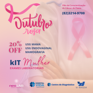O Hospital Vida inicia o mês de Outubro com mais uma campanha de descontos em exames essenciais para o diagnóstico do câncer de mama, o que mais mata mulheres em todo o mundo. Ultrassonografias da mama/endovaginal e mamografias estão entre os exames incluídos na campanha promocional destinada às mulheres que não tem plano de saúde,...