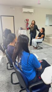 Na sexta (09), as homenagens às mamães seguiram com mais uma ação no auditório do Hospital. Colaboradoras e acompanhantes de pacientes da hemodiálise tiveram uma manhã especial e de cuidados, com direito à tutorial de auto maquiagem, esmaltação de unhas, uma mini feirinha de acessórios/papelaria, palestra sobre autocuidado e sessão de alongamento com a personal trainer Lourdinha Caldas.