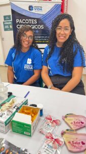 abeiras. Realizamos aferição de pressão, testes de glicemia capilar, distribuímos mimos para as mamães e orientamos sobre saúde e serviços oferecidos pelo Hospital Vida.